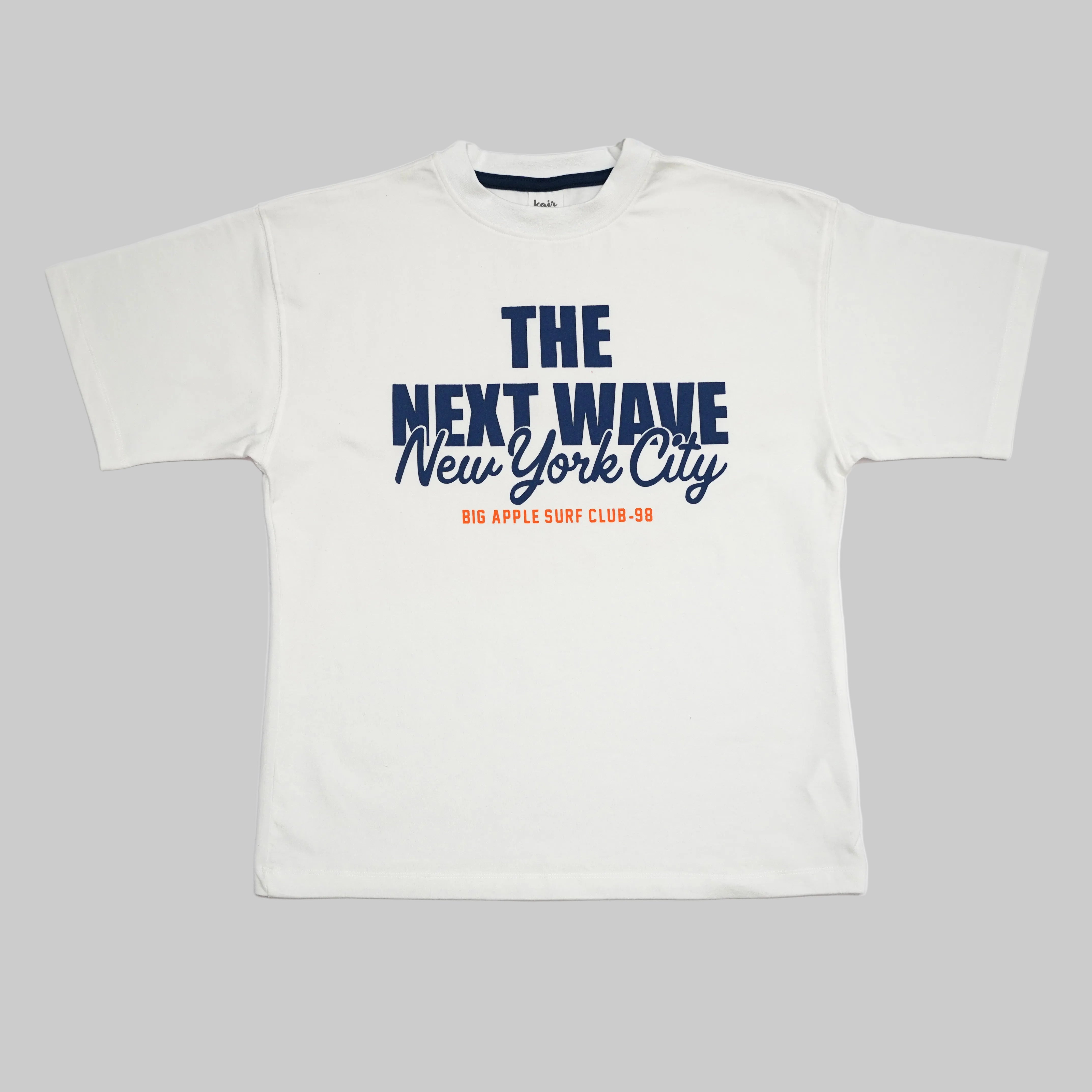 Make a bold style statement with this cool, contemporary graphic T-shirt. Featuring a striking “The Next Wave – New York City” print on a crisp white base, this tee blends urban attitude with everyday comfort. Crafted from soft, breathable fabric, it’s perfect for active days while keeping your child feeling relaxed and stylish.