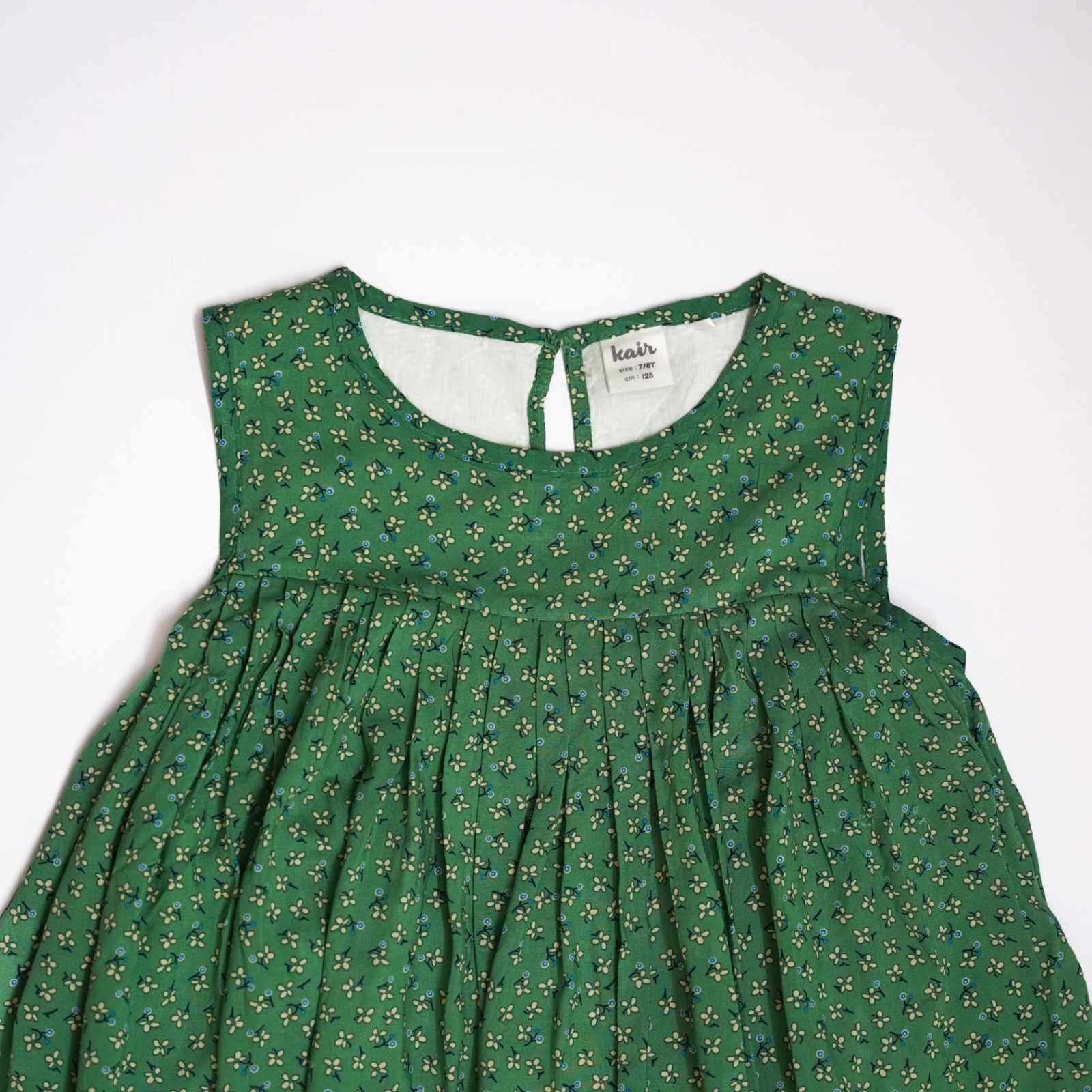 Kid Girls Round Neck Sleeveless Green Dress