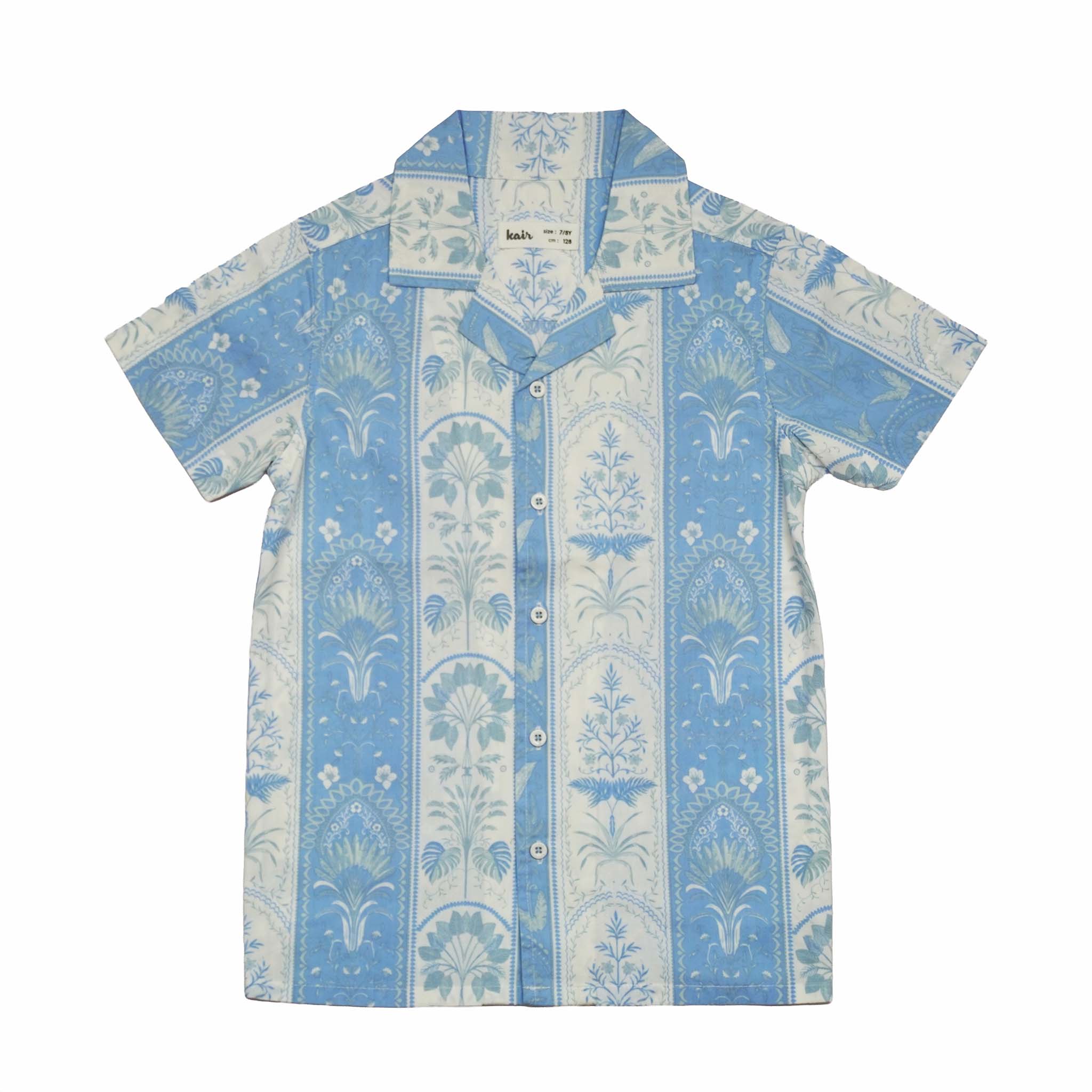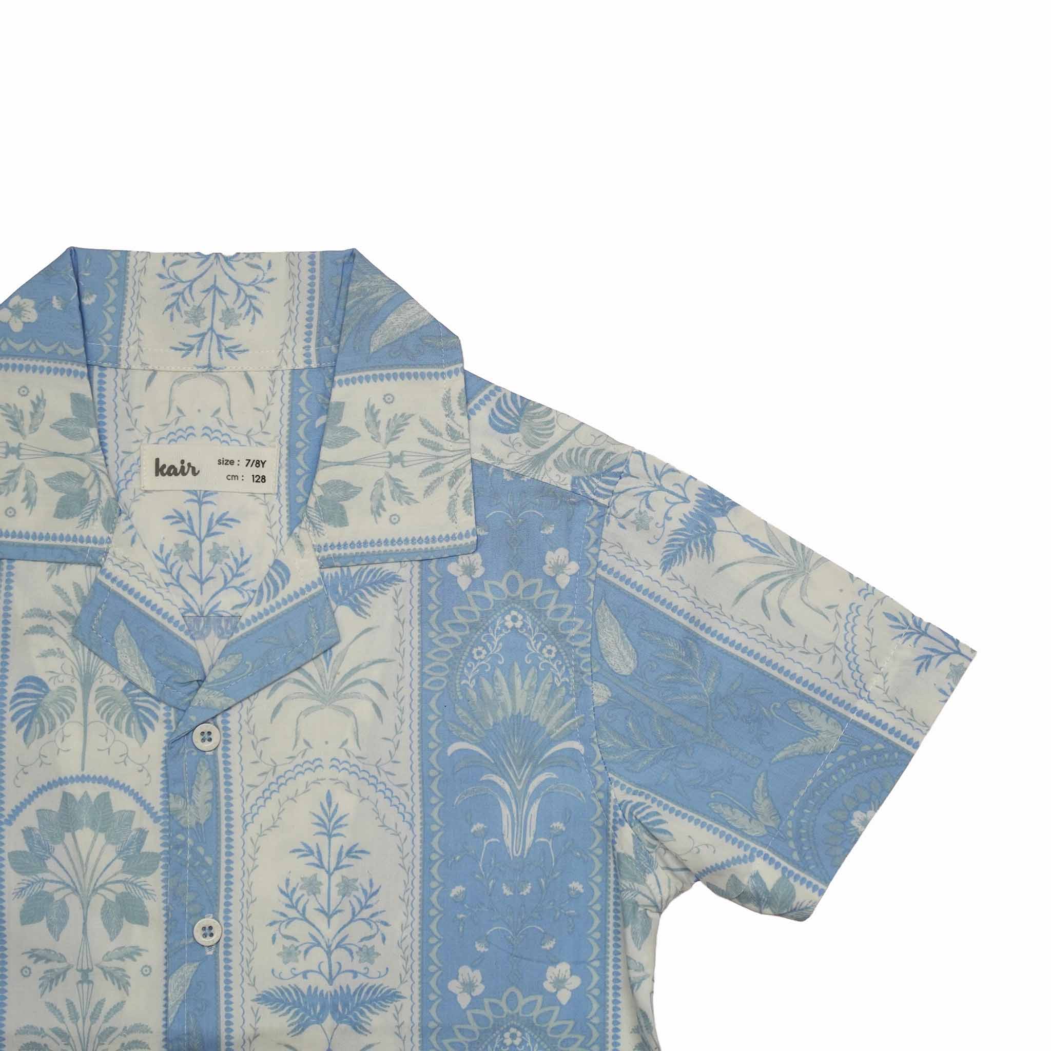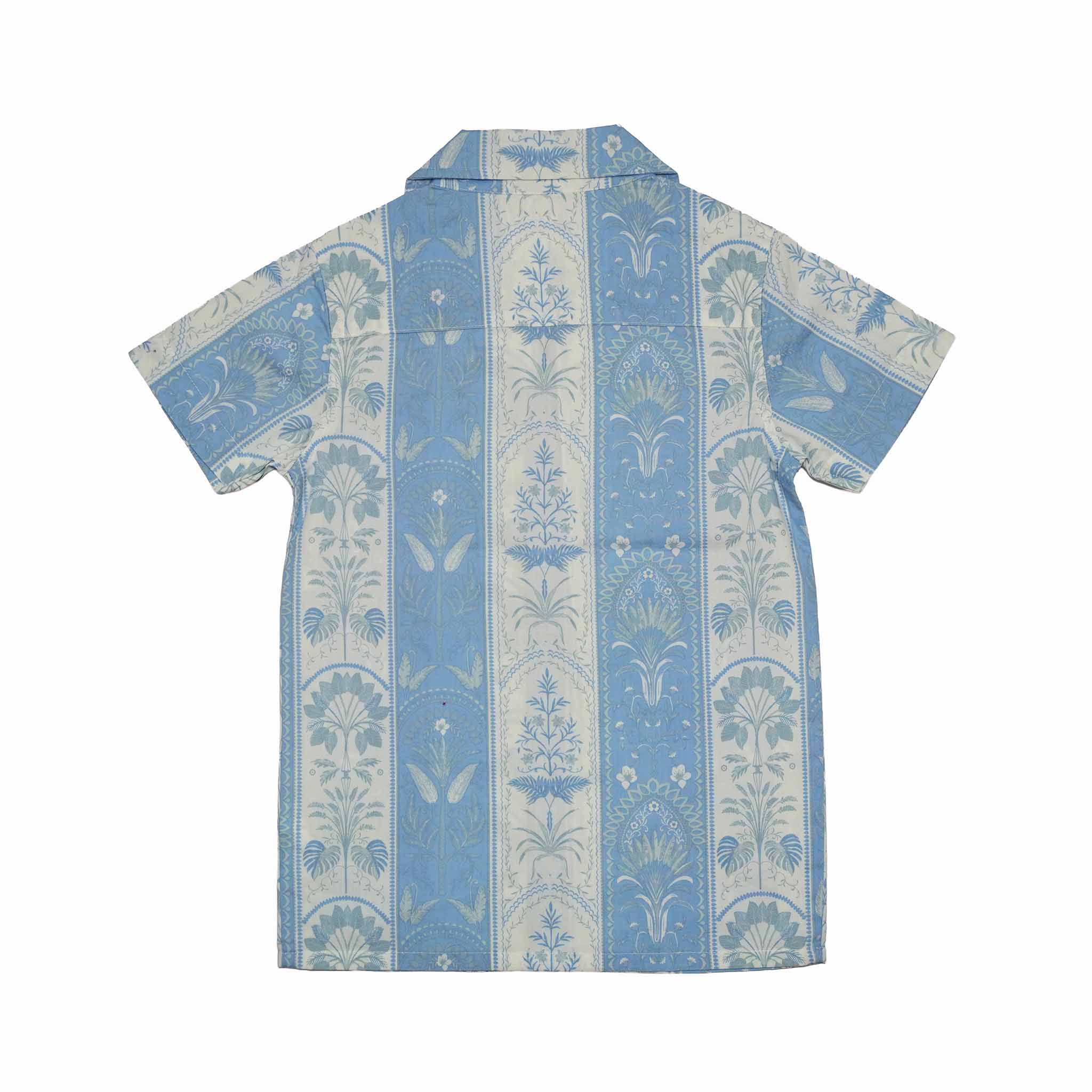 Kid Boys Safari Collar Neck Half Sleeve Blue Printed Shirt